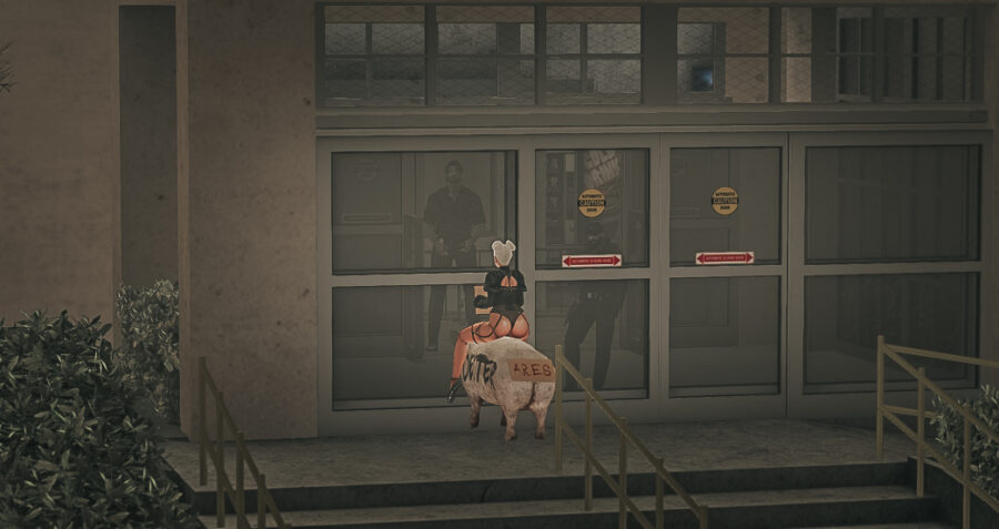Reported in Hathian today; a parade of clowns, or at least what clowns might look like from a horror movie franchise… and they were riding pigs. Pigs named after HPD officers recently accused of rape and other crimes (although it appears Atsuko has now been added to the list…). You can read more about the alleged rapists here and then more recently here, when some pig heads on sticks were left outside HPD.