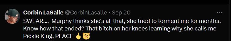 Yes I am of course talking about notorious sex pest and lecher Emeric “Corbin” LaSalle. Emmy, Cornbin, Mid tier Cornholio, “Its Corbin Time” (something the man is known to shout loudly when aroused)… He’s also known as Pickle and all these are the names that have become commonly associated with the man who ‘serves‘ our fair city. Those more familiar with Corbin and his reputation will know his record has remained fairly spotless with the HPD. While he seems to have kept the cops at bay, his long running feud and intimate relationship with the ‘Irish minx Murphy’ (his words folks) has kept the town buzzing… This is despite calling the woman out on a since deleted tweet.