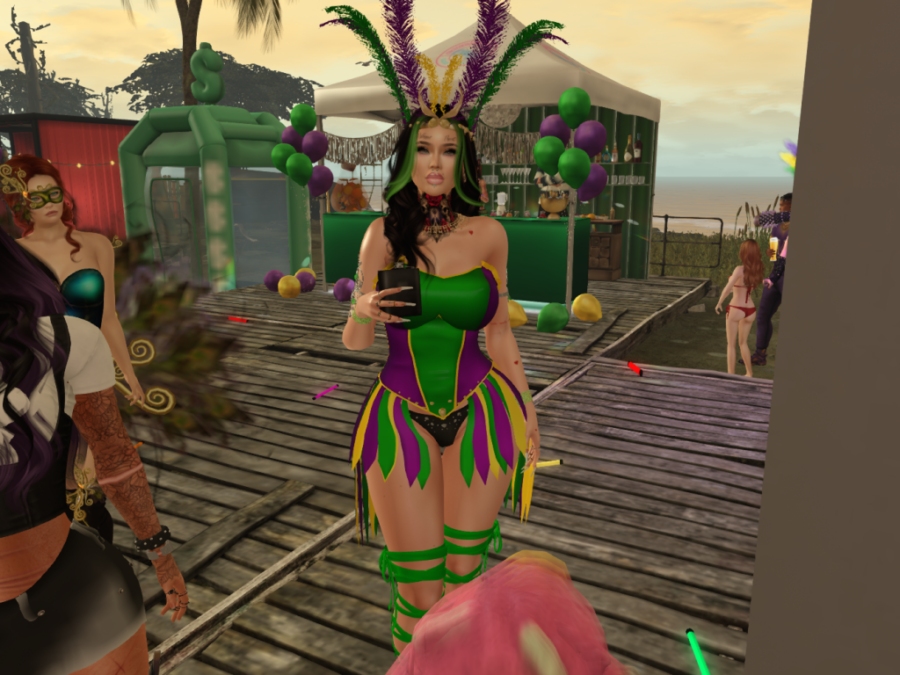 Everyone showed up in the requisite green, purple, and gold. Except for a few fashion rebels, of course. You know who you are, you magnificent oddballs. We had King Cakes, Baby Cakes, and Vegas dancing girls. Because, Hathian. Why not?