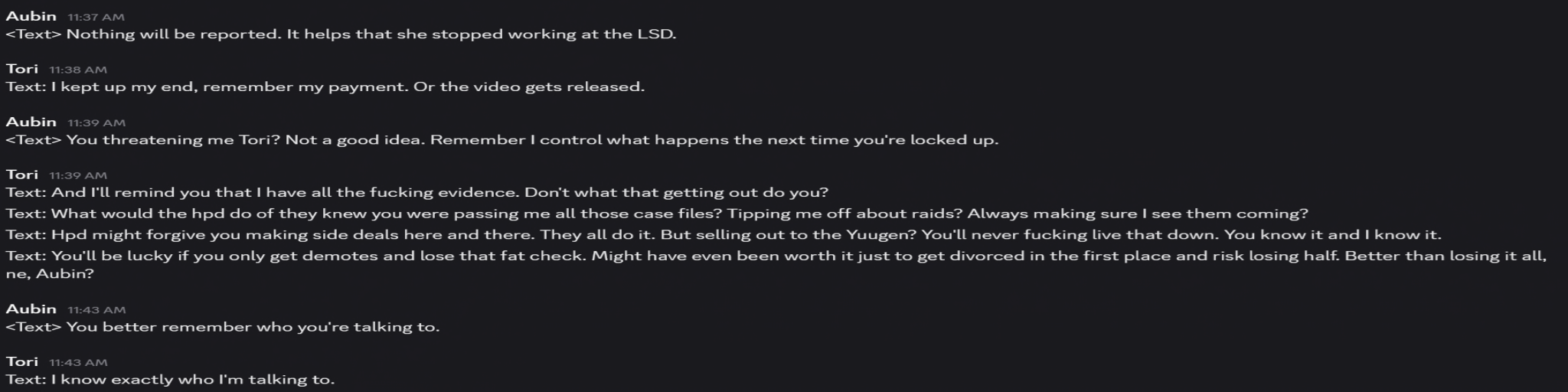 Never-the-less while some may tolerate low level corruption as a way to survive in this city, most would draw the line on being in bed with Gang leaders, such that any form of integrity is likely compromised. Gang leader wants you to protect her members when they’re in prison and tells you to attack or molest others instead? Sure. Gang leader wants a member given special treatment or avoid an arrest? Sure, that’s probably likely. Police Officer wants someone murdered or otherwise disappeared? Why not – it’s on the menu.