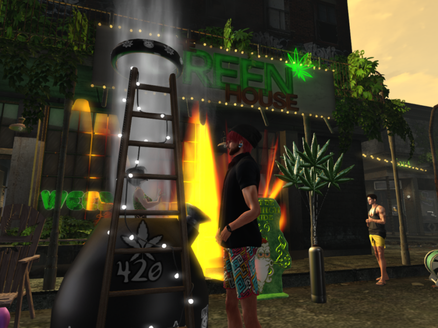 What began as a summer block party outside the Green House, the city’s beloved dispensary and excuse for grilled meat, (bad?) music, and stronger joints turned into the kind of spectacle only Hathian can stage. The inflatables went up, the BBQs were lit, and the stoners came out in force. Popsicles, brownies, and oversized bongs were passed around like a Hathian communion and in the interests of ensuring Daiyu was given her daily quota of blood (articles – Ed) I was there to partake and record. For a moment, it felt like the city was capable of joy.
