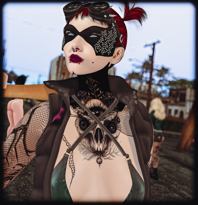 Poison Ivy, vine-wrapped redhead, chlorophyll couture, and that ‘kiss-of-death’ pout. Glittered leaves clung where laws and common sense would prefer fabric. My take: Photosynthesis won’t save you from the heat in Hathian…