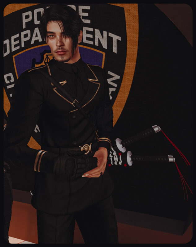 She lets her lips curve, eyes narrowing slightly behind a teasing squint. “Officer Angelique de Vaucluse, you’ve managed to master the art of mystery, gloves on indoors, sunglasses under fluorescent light… If this policing thing ever gets dull, you could moonlight as a film noir hitwoman or a very discreet therapist. Either way, we’d follow, cautiously, because clearly, you know what you’re doing.”