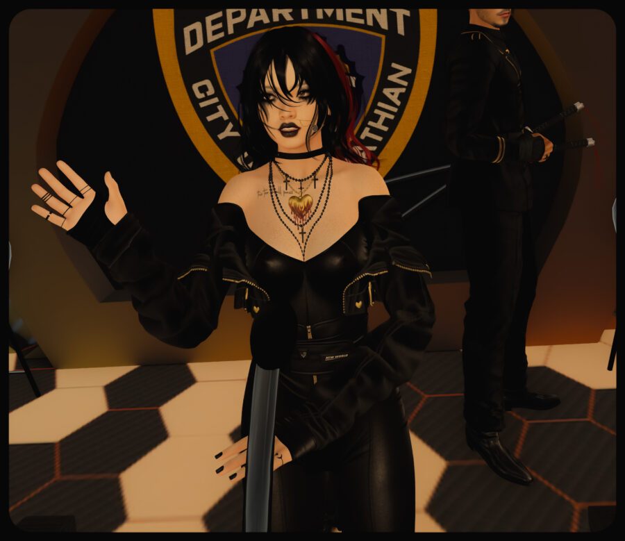 A faint, playful glint warms her expression. “Every institution needs a poster icon, someone who reminds us that darkness can serve as uniform as much as armor. And if there’s ever a recruitment campaign for the department’s Gothic Division, I think we all know whose silhouette it’ll be… about the only one who can make me pay a parking ticket, that’s for fucking sure… Vanora, for embodying spirit, strength, and the kind of confidence that makes both halos of a Saint and handcuffs for an Officer look good, this one’s yours.” Her mouth curves into that familiar sly smile. “All yours dear…” and indicates her towards Krystal to collect.