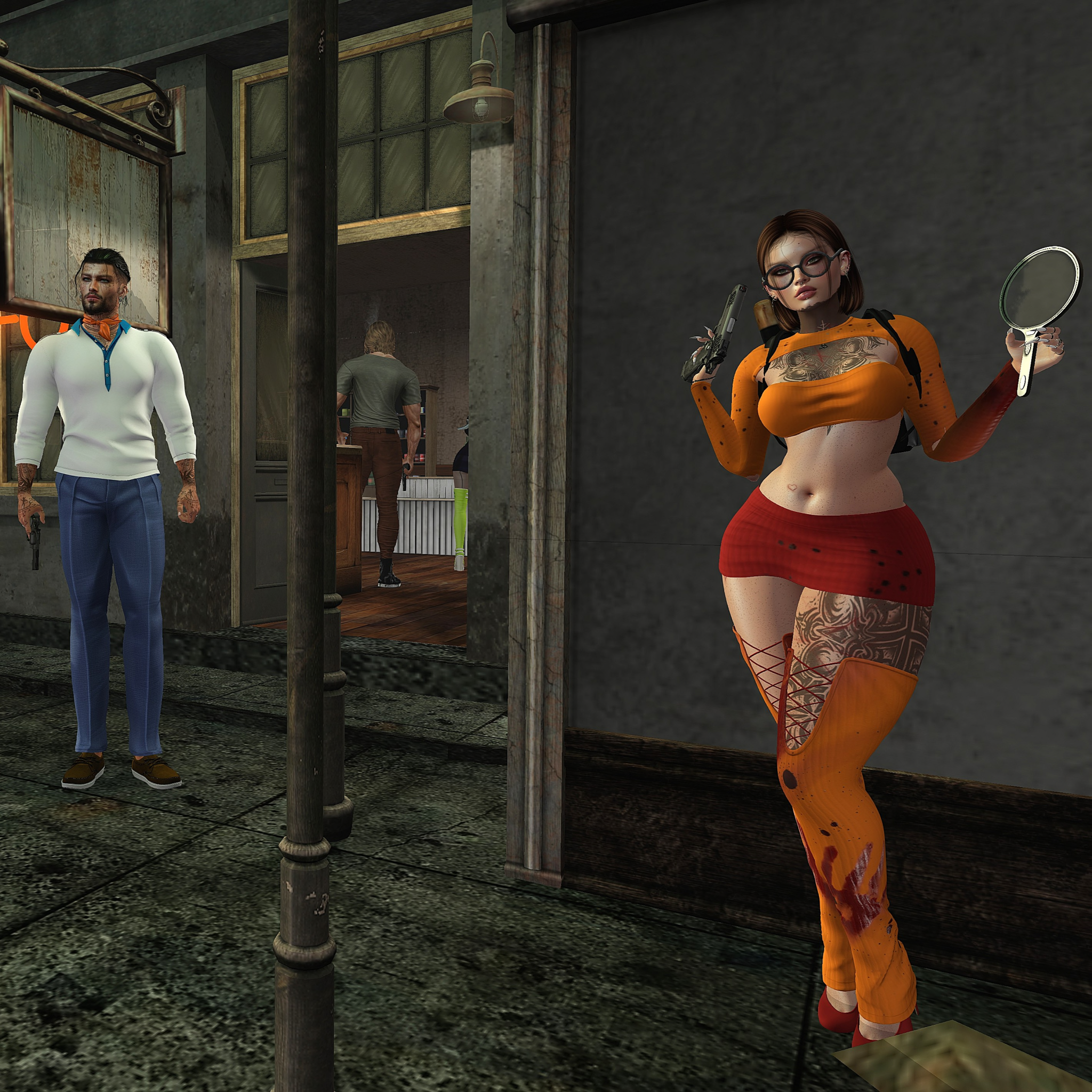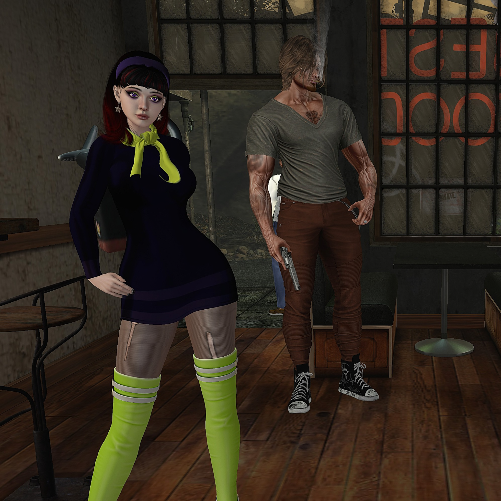 Outside, acting as lookouts alongside the bag-headed drivers (demanding orders for food from their comrades inside), were Fred, complete with ascot, impossibly tight trousers, and a firearm and Velma, who appeared more interested in mischief (or turning tricks – Ed) than mystery-solving.