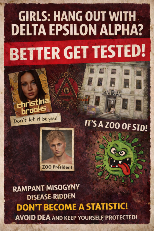 Recently a poster made it into the CU Supplement in Observer accusing the Delta Epsilon Alpha Fraternity of quite a few things, and while it was signed ‘Anonymous’ we suspect the Lambda Obscura Greek house of being behind it. Mainly as it surfaced not long after we ran a prank on them! This, we guess is a ‘counter prank’, albeit one that failed miserably, but I’ll get back to why later.