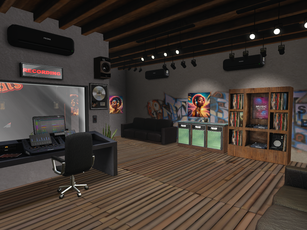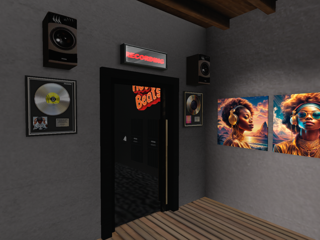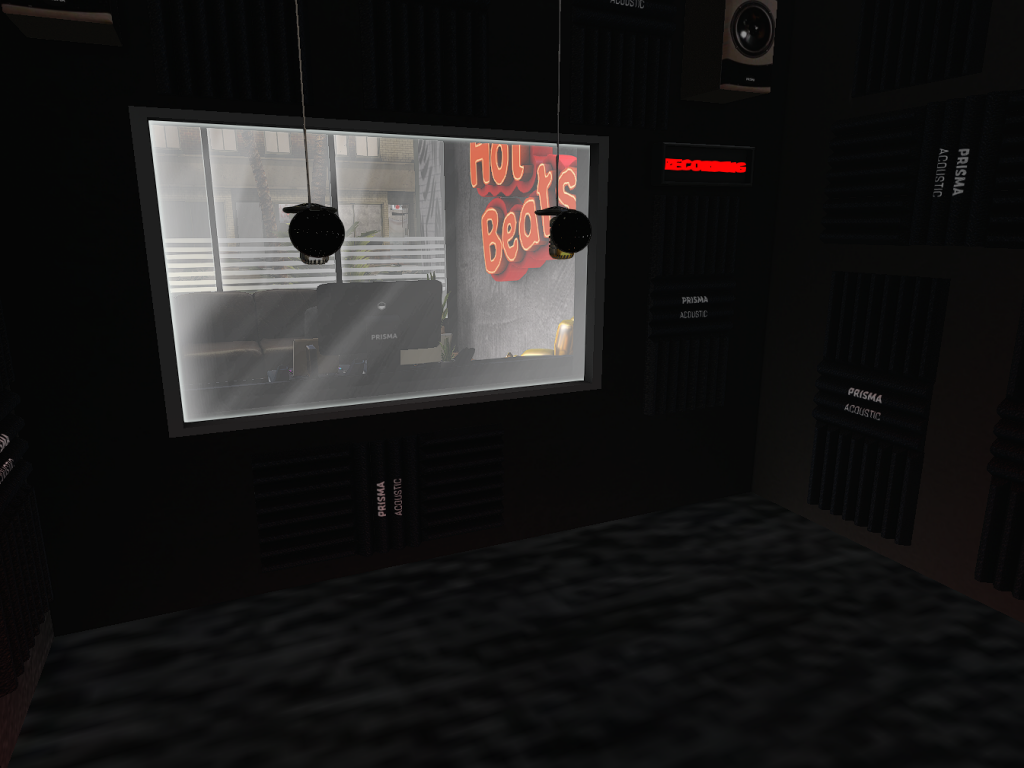 The recording studio can be ((IC rental only – no L$)) rented via Denise DeMarco. ((Denise Domela)) and artists can record sessions for a fixed sum per hour. The studio contains all the technology and equipment involved in producing heavy hitting and mesmerizing hot tracks.