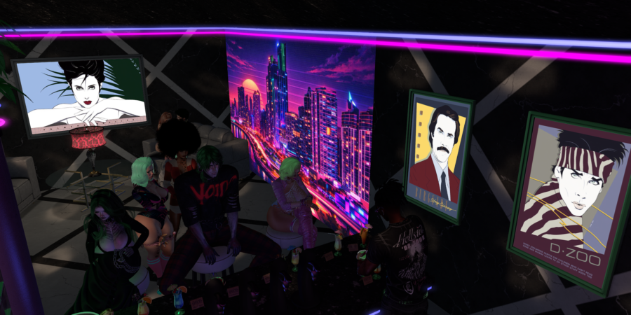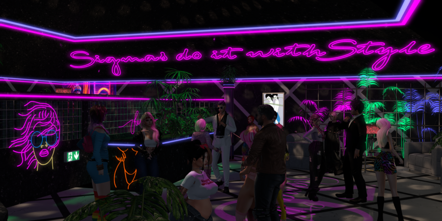 Hello again Hathian, Jizzabelle here. I wanted to offer up a quick little photodump from Sigma Theta Noir’s latest theme party, for which we went 80’s! After some painstaking work, the attic was decked out into a neon fever dream and the vintage tunes were out in full force!
